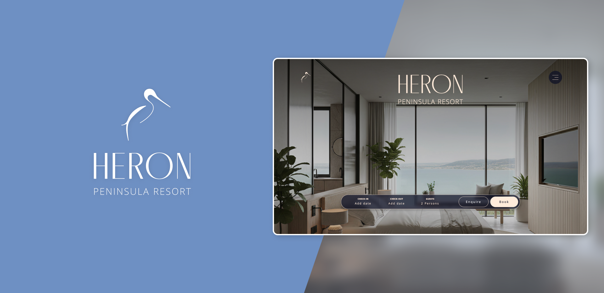 Heron Peninsula Resort is a concept website created to explore how elegant visual design, calm typography, and thoughtful layout can communicate the atmosphere of a high-end lakeside retreat.
